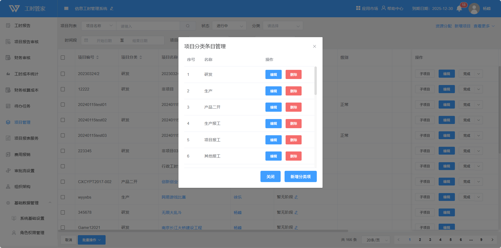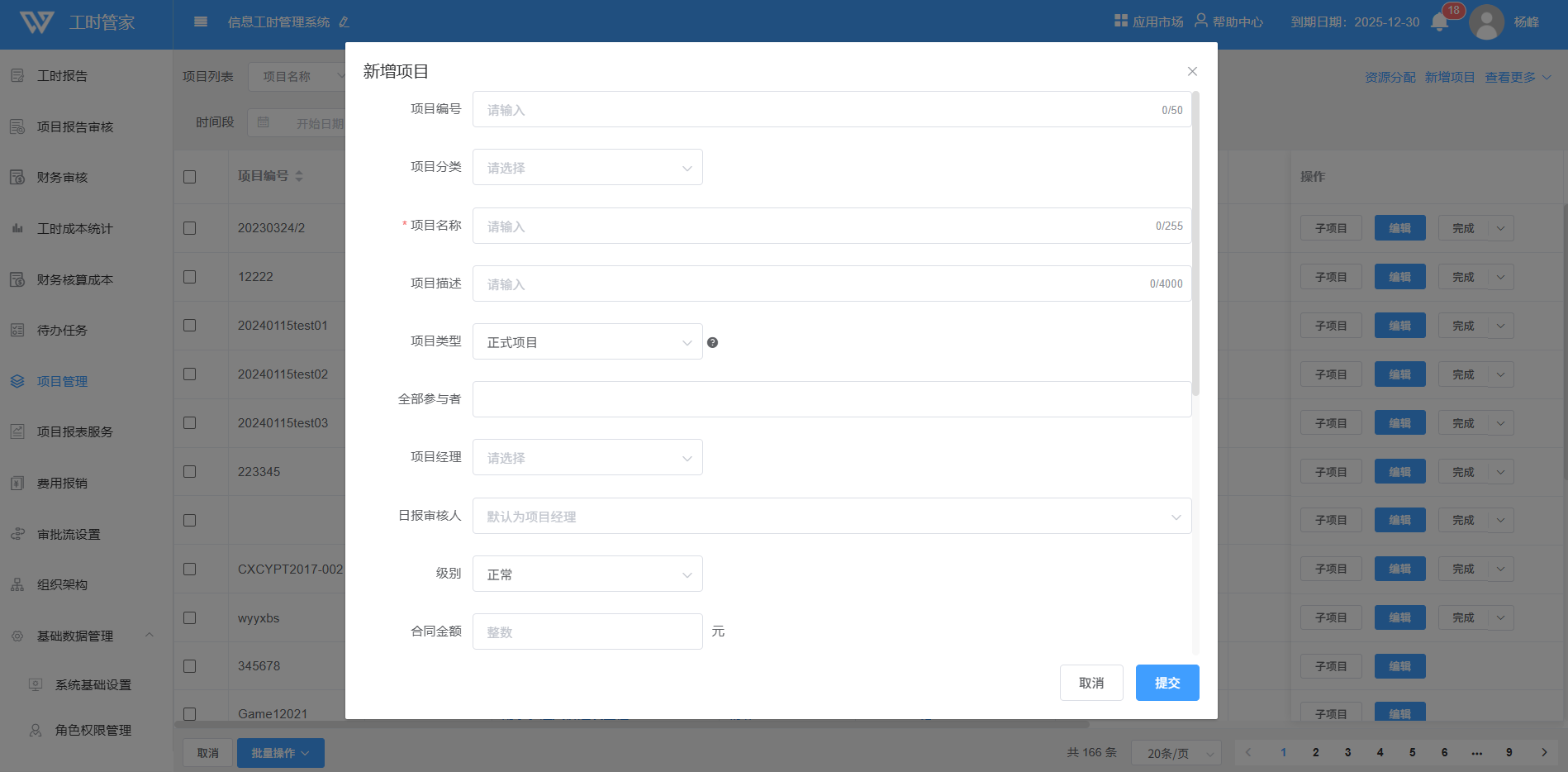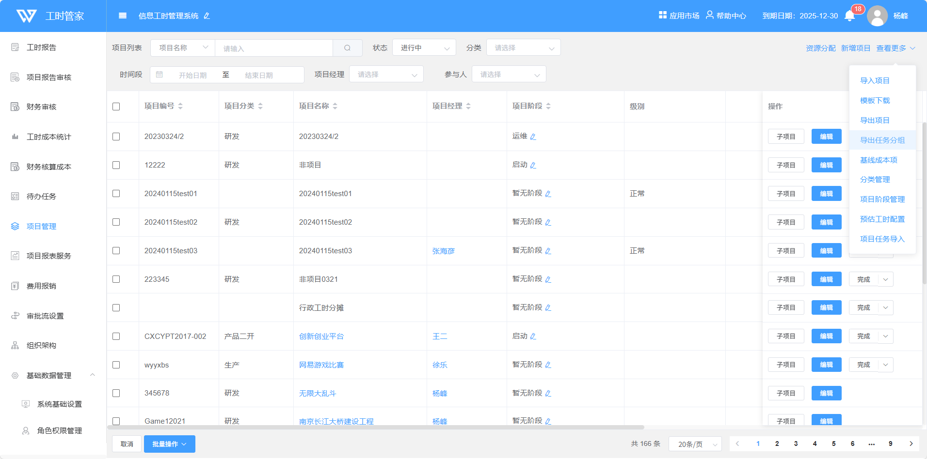 l 支持项目全生命周期管理,涵盖项目创建、阶段划分、任务分配、工时填报等环节,系统内可记录各类研发及非研发项目(含子项目),明确项目编号、名称、项目经理、计划起止时间等核心信息,确保工时与项目强关联。
