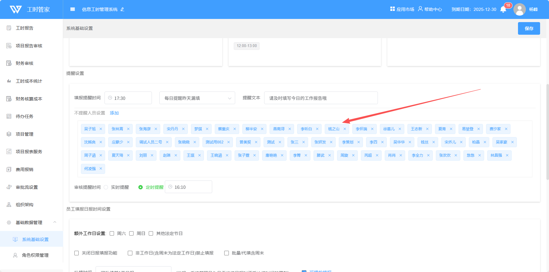 l 支持不提醒人员自定义设置,可根据员工岗位特性(如临时项目人员、兼职人员)调整提醒规则,兼顾管理灵活性与合规性。