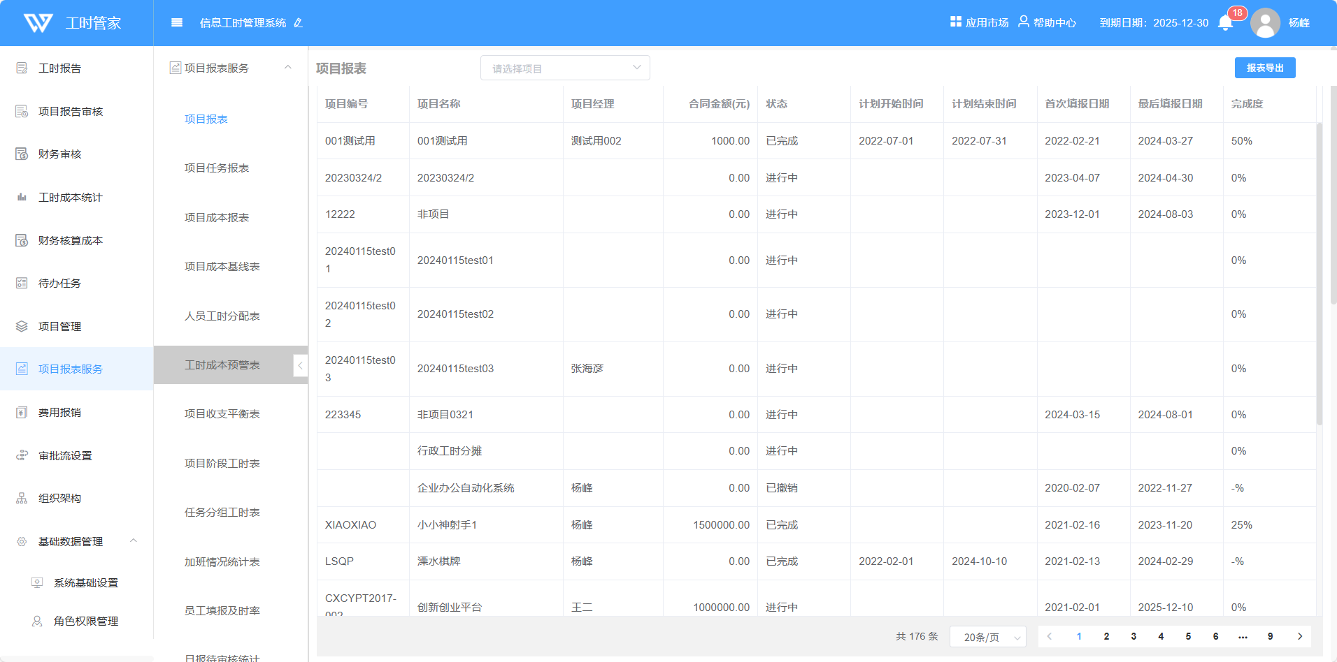 l 提供项目报表多样化输出,包括项目任务报表、项目成本报表、工时成本预警表等各类报表,支持报表导出,满足审计过程中对项目工时数据的追溯需求。